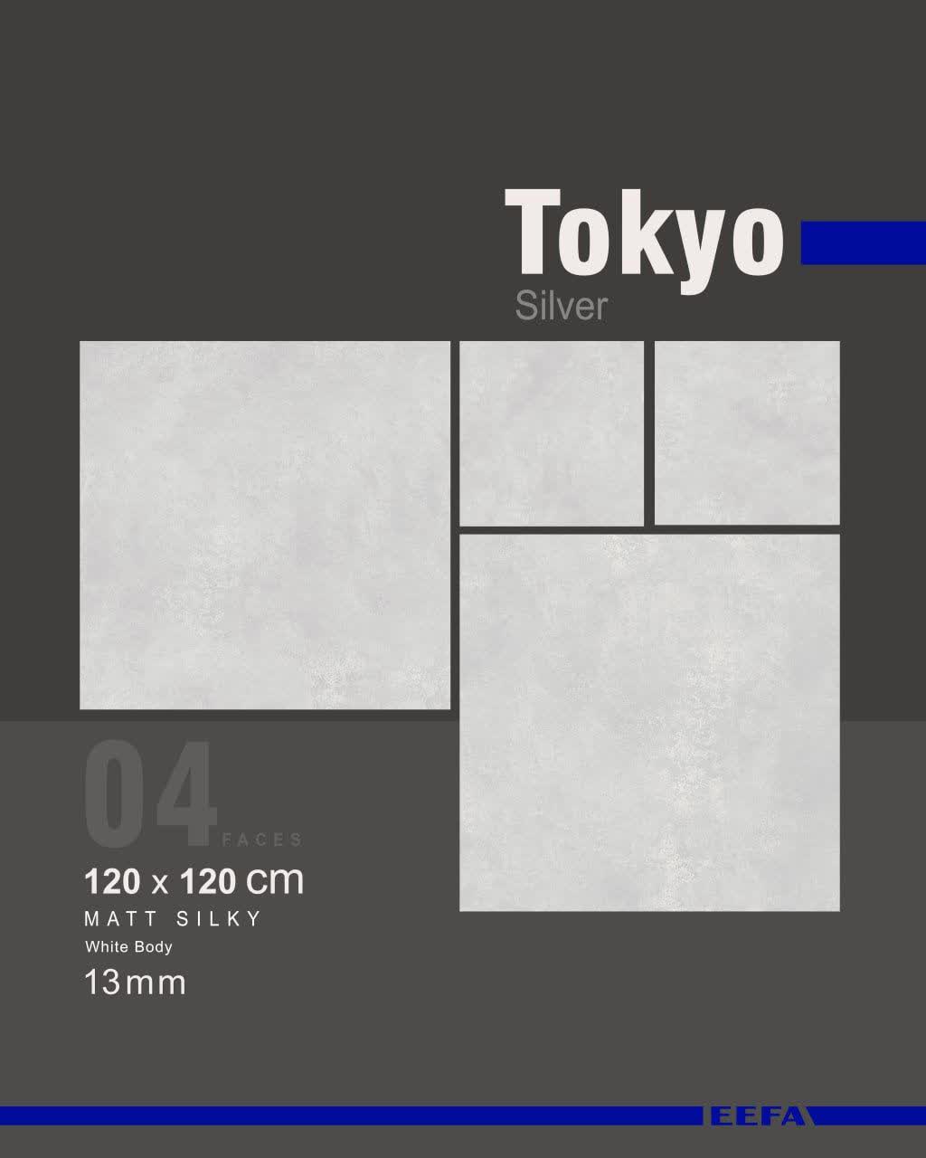سرامیک پرسلان توکیو نقره ای کاشی ایفاسرام تولید شده در سایز ۱۲۰×۱۲۰ با لعاب مات ابریشمی و ضخامت ۱۳ میلیمتر، یکی از چشمگیر ترین اسلب های تولید شده این کارخانه استاندارد و به روز می باشد.
