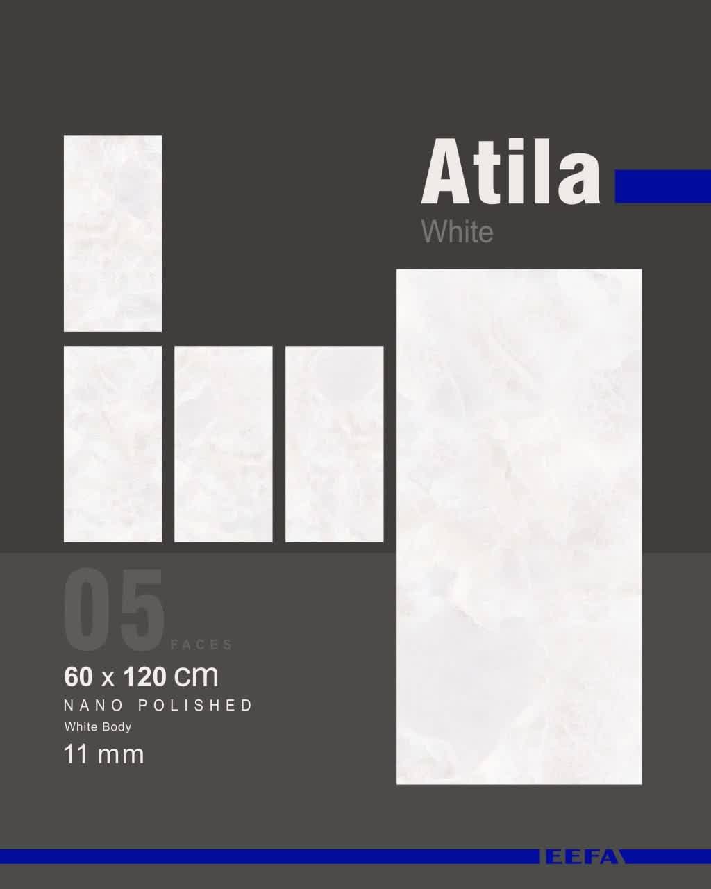 سرامیک آتیلا سفید کاشی ایفاسرام تولید شده در سایز ۱۲۰×۶۰ با لعاب نانوپولیش و ضخامت ۱۲ میلیمتر، یکی از چشمگیر ترین محصولات این کارخانه استاندارد و به روز می باشد.
