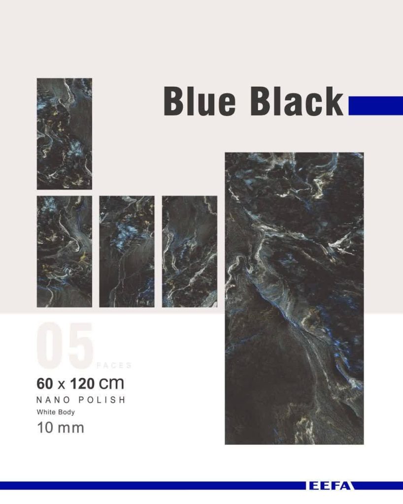 سرامیک بلو بلک کاشی ایفاسرام تولید شده در سایز ۱۲۰×۶۰ با لعاب نانوپولیش و ضخامت ۱۲ میلیمتر، یکی از چشمگیر ترین محصولات این کارخانه استاندارد و به روز می باشد.
