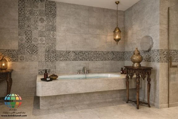 کاربرد سرامیک تاچ مشکی کاشی پرسپولیس در حمام مستر و سرویس بهداشتی لوکس