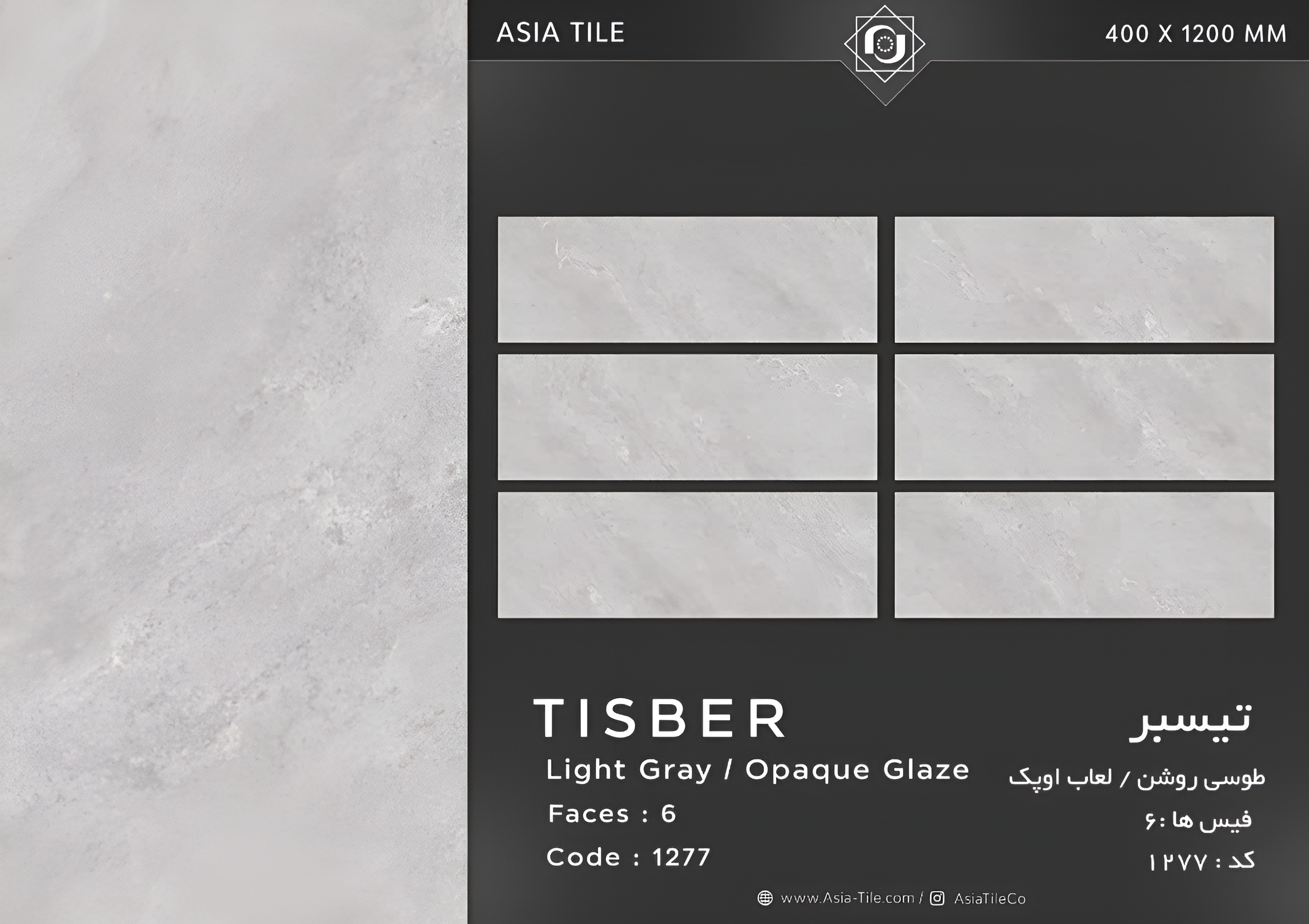 سرامیک تیسبر طوسی روشن کاشی آسیا دارای ۶ فیس مختلف می باشد.