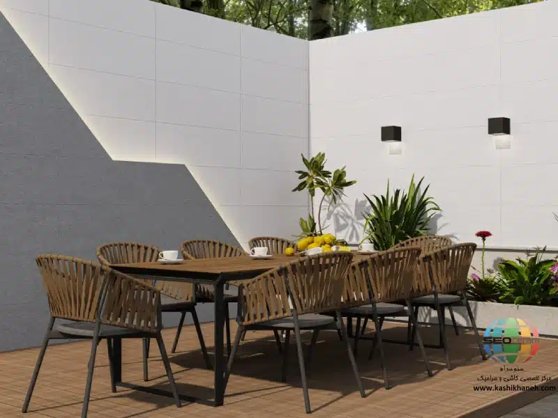 رنگ طوسی تیره این سرامیک راک رویال طوسی تیره مات کاشی پرسپولیس به خوبی با نورپردازی موضعی و چراغهای دیواری (مانند تصویر)، یک بازی نور و سایه سهبعدی خلق میکند و دیزاین را دراماتیکتر میسازد.