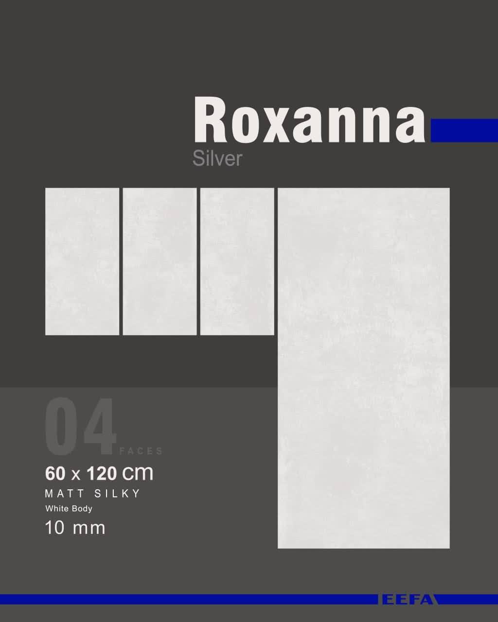 سرامیک رکسانا نقره ای کاشی ایفاسرام تولید شده در سایز ۱۲۰×۶۰ با لعاب مات ابریشمی و ضخامت ۱۲ میلیمتر، یکی از چشمگیر ترین محصولات این کارخانه استاندارد و به روز می باشد.