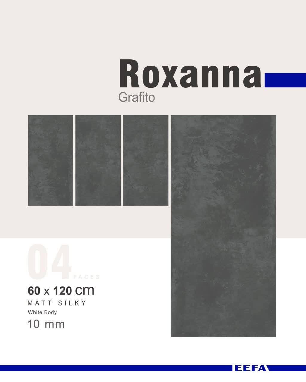 سرامیک رکسانا گرافیت کاشی ایفاسرام تولید شده در سایز ۱۲۰×۶۰ با لعاب مات ابریشمی و ضخامت ۱۲ میلیمتر، یکی از چشمگیر ترین محصولات این کارخانه استاندارد و به روز می باشد.