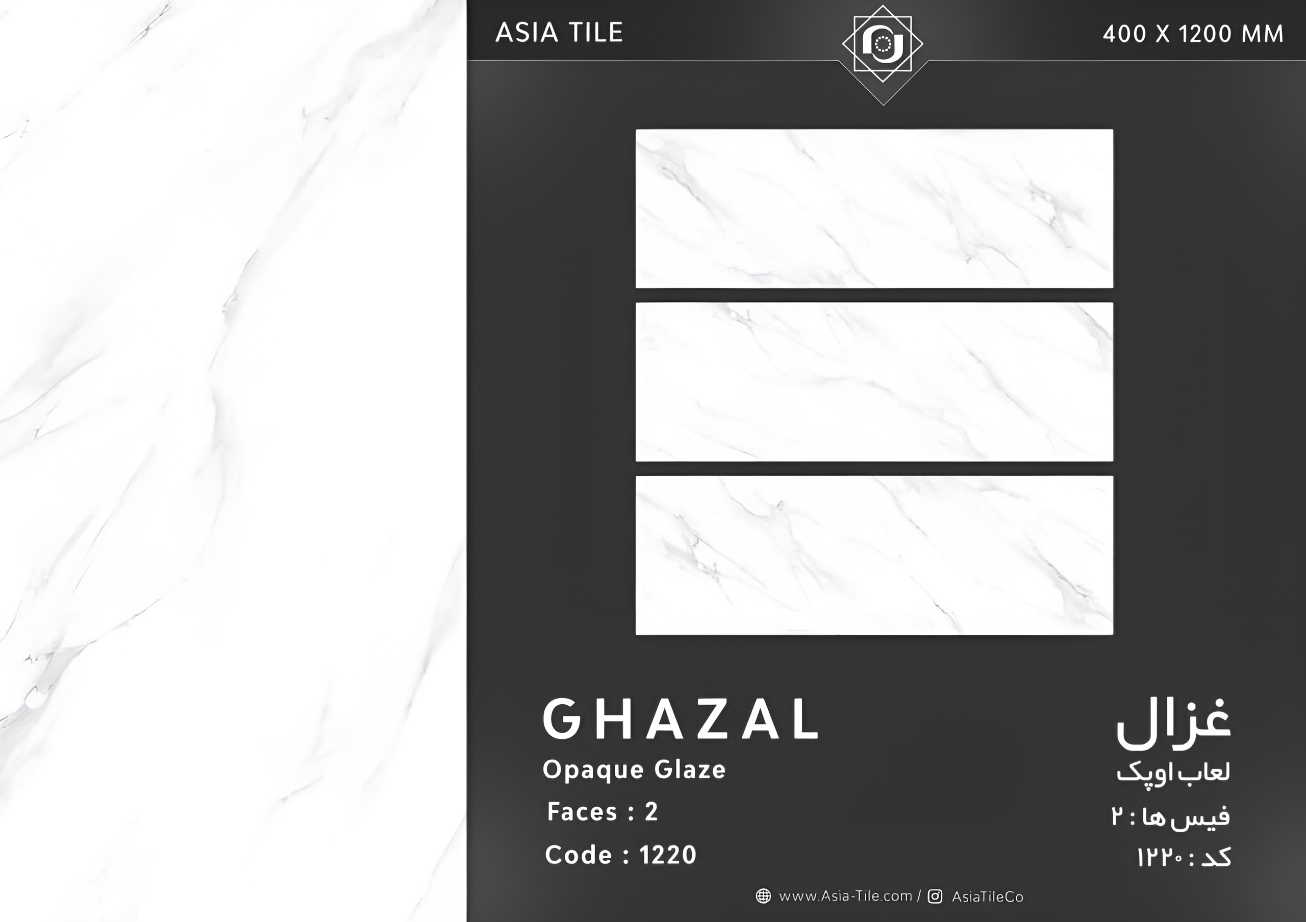 سرامیک غزال سفید کاشی آسیا ۱۲۰×۴۰ – GHAZAL