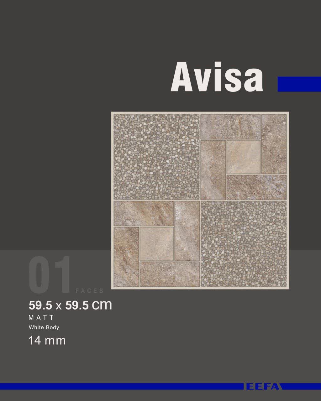 سرامیک پرسلان آویسا کاشی ایفاسرام تولید شده در سایز ۶۰×۶۰ با لعاب مات و ضخامت ۱۴ میلیمتر، ترکیبی از طراحی زنده، لعاب مات ضد لغزش و مقاومت فنی بالا این کارخانه استاندارد و به روز می باشد.