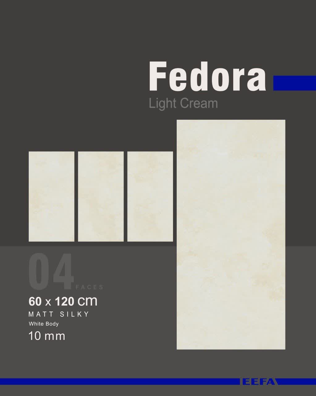 سرامیک پرسلان فدورا کاشی ایفاسرام تولید شده در سایز ۱۲۰×۶۰ با لعاب مات ابریشمی و ضخامت ۱۲ میلیمتر، یکی از چشمگیر ترین محصولات این کارخانه استاندارد و به روز می باشد.