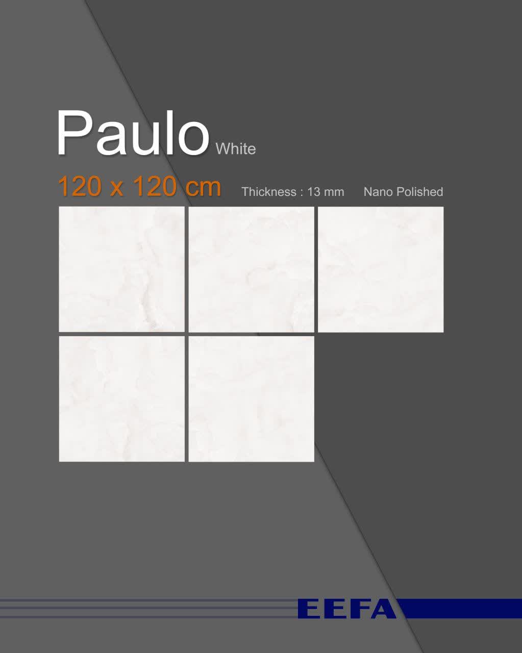 سرامیک پرسلان پائولو کاشی ایفاسرام تولید شده در سایز ۱۲۰×۱۲۰ با لعاب نانوپولیش و ضخامت ۱۳ میلیمتر، یکی از چشمگیر ترین اسلب های تولید شده این کارخانه استاندارد و به روز می باشد.